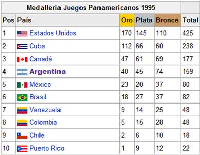 En los Juegos de 1995, Argentina superó el mejor registro histórico de 154 preseas, obtenidas en la apertura panamericana de Buenos Aires 1951.