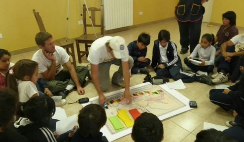 “Cuando comenzamos a preparar el viaje, se nos ocurrió que esta aventura tenía que tener un costado solidario. Hicimos algunas campañas en Mar del Plata para recolectar libros y útiles escolares. Lo recaudado lo transportamos en un tráiler, que también fue donado. En este recorrido visitamos las escuelas que tienen necesidades económicas y les entregamos estos materiales. Previamente les mostramos un video relacionado con la Ruta 40 y luego hacemos un juego de mesa que inventamos nosotros de preguntas y respuestas. También estamos grabando un documental, donde mostraremos toda la experiencia vivida”. Comentó Juan.