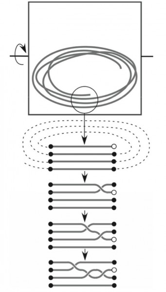 La conclusión del estudio es que no importa que tan cuidadoso seas al guardar tus auriculares, mientras estos midan más de 46 cm, y menos de 150 cm de largo (la mayoría anda en 1,2 m) y estén expuestos del movimiento, indefectiblemente se van a anudar. Y no porque haya alguna maldición sino por simple física; alcanza con un primer cruce para que todo termine en un bollo. Y acá hay un gráfico que te muestra claramente cómo se da el proceso en que los cables se enredan.