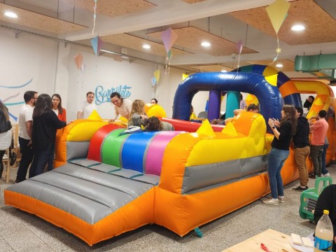 Juegos: Inflable de competencia - Laberinto con pelotero - Plaza blanda - Canchita de fútbol al aire libre - Área de juego libre con plazas temáticas - Pantalla gigante con Just Dance - Juegos organizados por nuestros profes.
