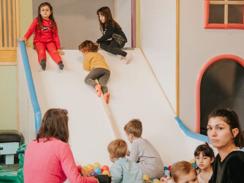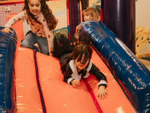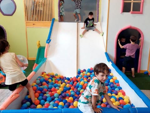Juegos: Gran casa laberinto - tobogán con pelotero - rampa de escalada - inflable - cama elástica - plaza blanda - metegol - pista de baile - proyector con pantalla gigante para utilizar con para just dance…