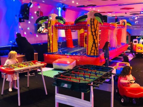 Juegos: Inflable de competencia - Pelotero inflable - Plaza blanda - Metegol - Tejo electrónico - Karaoke con pantalla gigante - Maquillaje artístico.