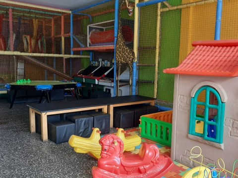 Juegos: Inflable - Laberinto con pelotero - Plaza blanda - Disfraces - Canchita de fútbol y básquet - Videojuegos arcade - Juego de sapo - Metegol - PentaTejo - Plataforma de baile - Pool - Karaoke - Pizarra.