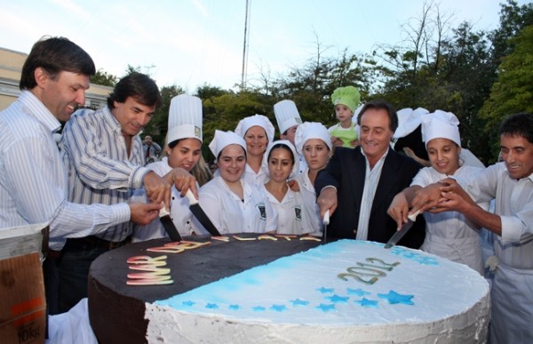 El Súper Alfajor Marplatense, presentado este miércoles, a cargo de los alumnos de la Escuela de Pastelería de STARPyH supervisados por el maestro pastelero y heladero Ariel Segesser y equipo, fue cortado este jueves en la tarde y degustados por los presentes.