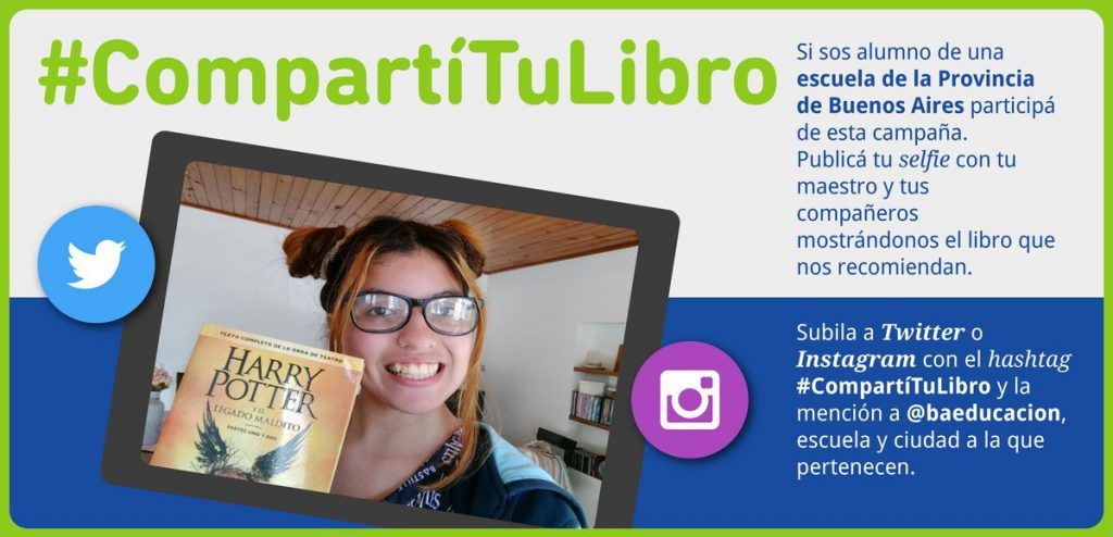 Con el hashtag #CompartÃTuLibro y la mención a @baeducacion, la escuela y la ciudad a la que pertenecen, los alumnos podrán compartir en Twitter o Instagram su libro preferido, según informó la Dirección de Educación.