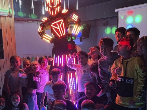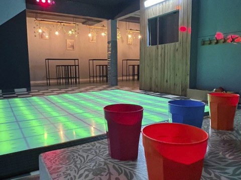 Juegos: super pegatlon - toro mecánico - metegol humano - pelotero con laberinto - plaza blanda - pantalla gigante para karaoke y just dance - pista de baile con luces audiorÃtmicas, láseres y humo.